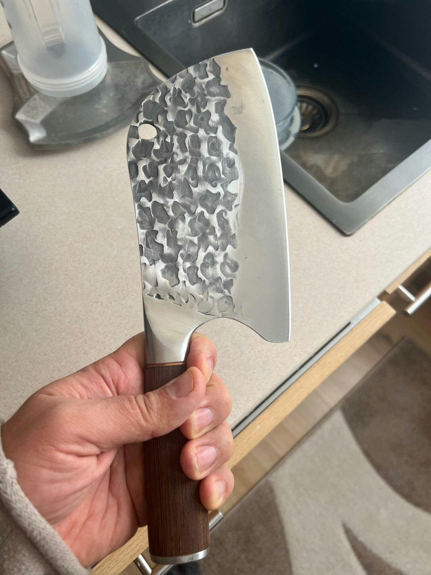 Olvídate de los cuchillos incómodos e inseguros. Gracias a su mango ergonómico y diseño equilibrado, el Cuchillo tipo hacha te da control total en cada movimiento. Transforma tu experiencia culinaria en puro placer y seguridad.
