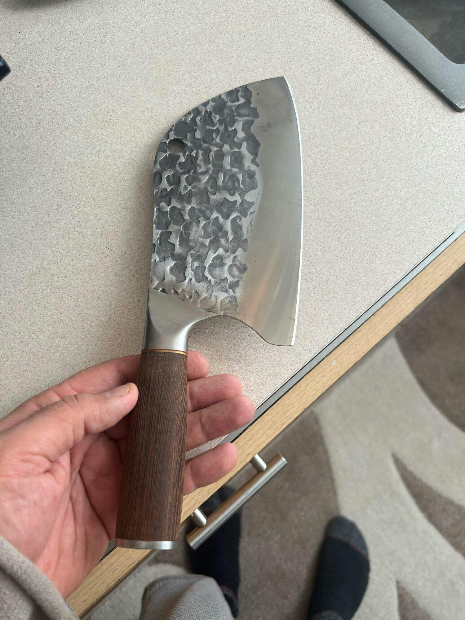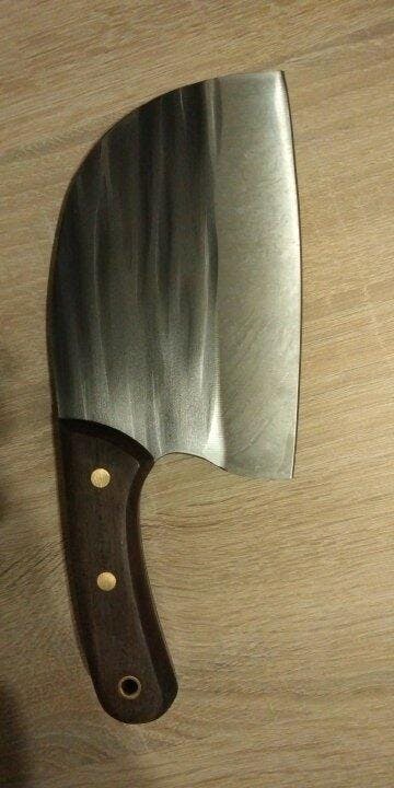 El Cuchillo tipo hacha está fabricado en acero inoxidable de alta calidad, resistente al desgaste y la corrosión.