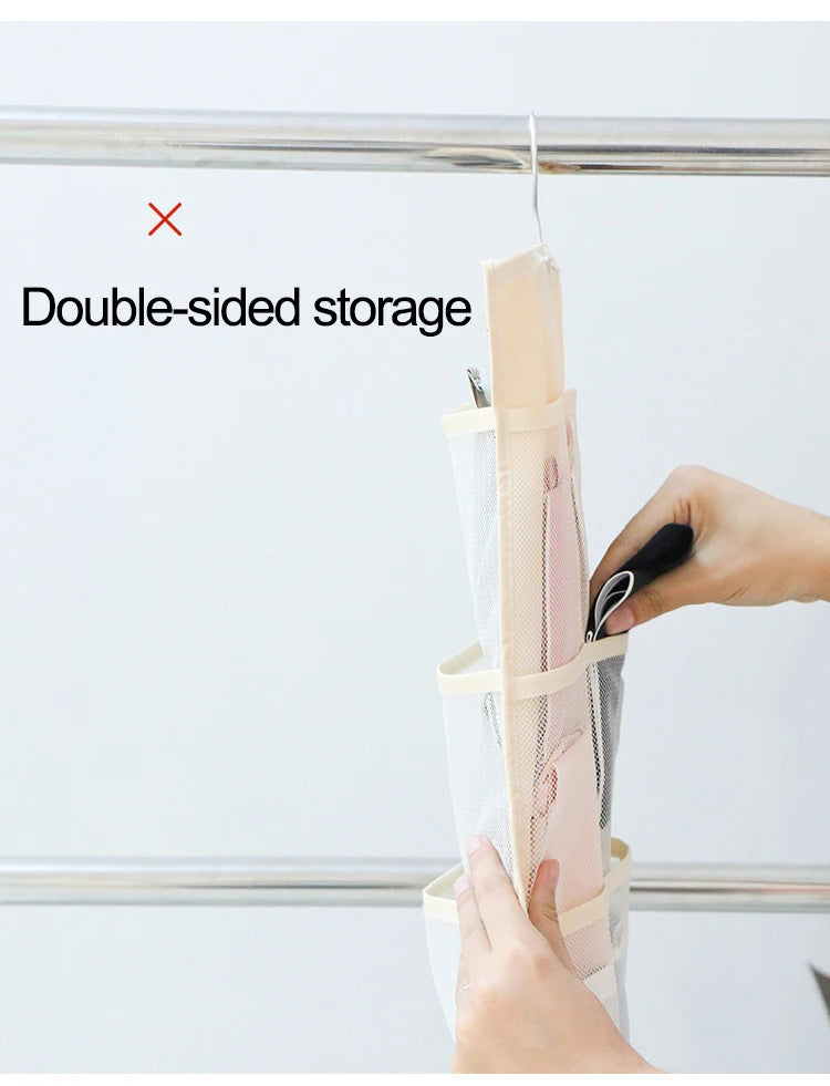 Guarda ropa interior, joyas o cargadores en un solo espacio con bolsillos espaciosos y transpirables. El diseño colgante ahorra espacio y te da acceso rápido a todo lo que necesitas.